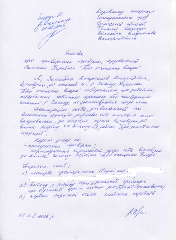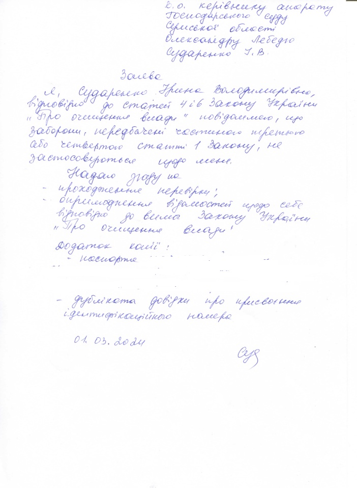На виконання вимог Закону України "Про очищення влади" Господарський суд Сумської області повідомляє про початок перевірки стосовно наступних осіб:
