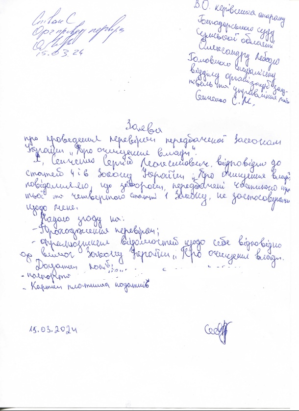 | Сенченко Сергій Максимович | Головний спеціаліст | декларація | 15.03.2024 | заява | ні |