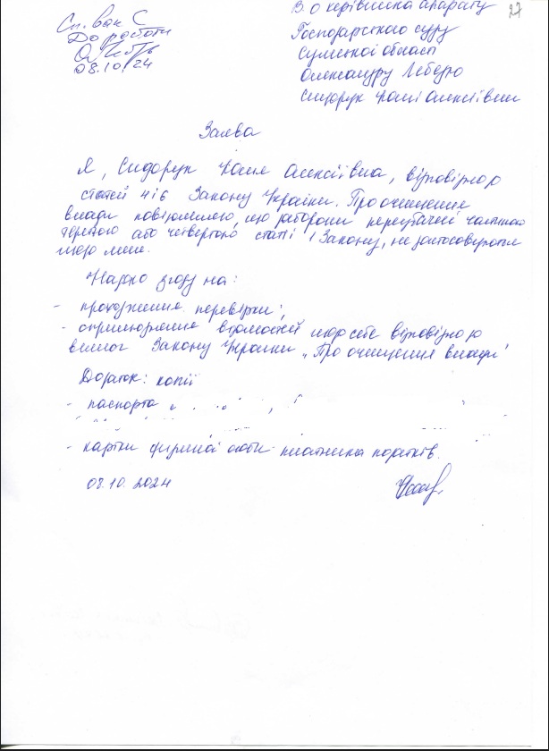 | Сидорук Юлія Олексіївна | Головний спеціаліст | декларація | 09.10.2024 | заява | ні |