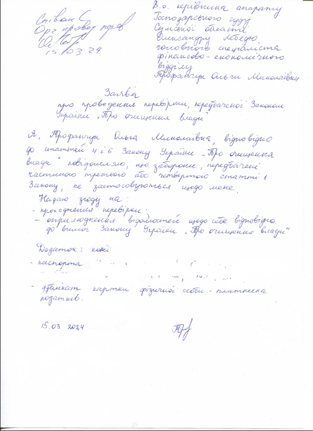 | Павлючок Іванна Миколаївна | Секретар судового засідання | декларація | 15.03.2024 | заява | ні |
