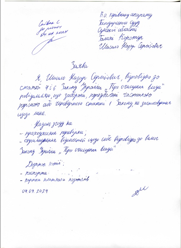 | Шишло Назар Сергійович | Головний спеціаліст | декларація | 04.09.2024 | заява | ні |